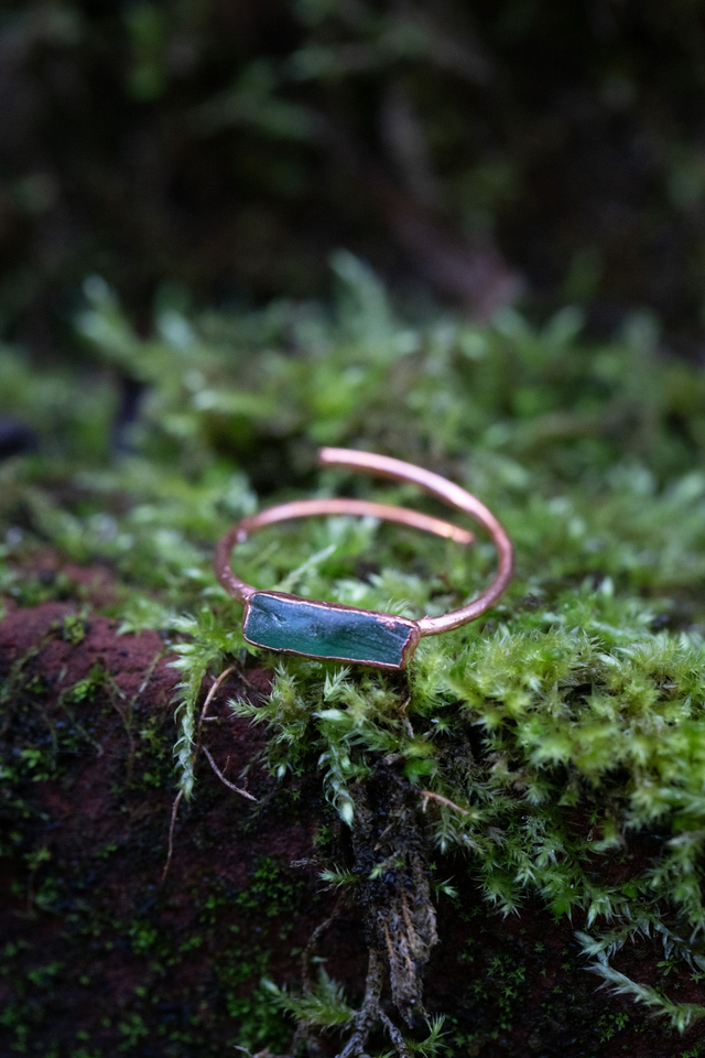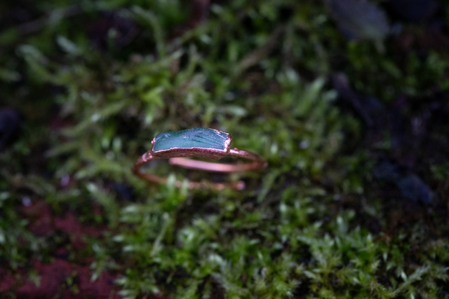 Inspirée par la nature, cette bague se compose d'un éclat de verre poli par la mer, ramassés sur une plage en Croatie.