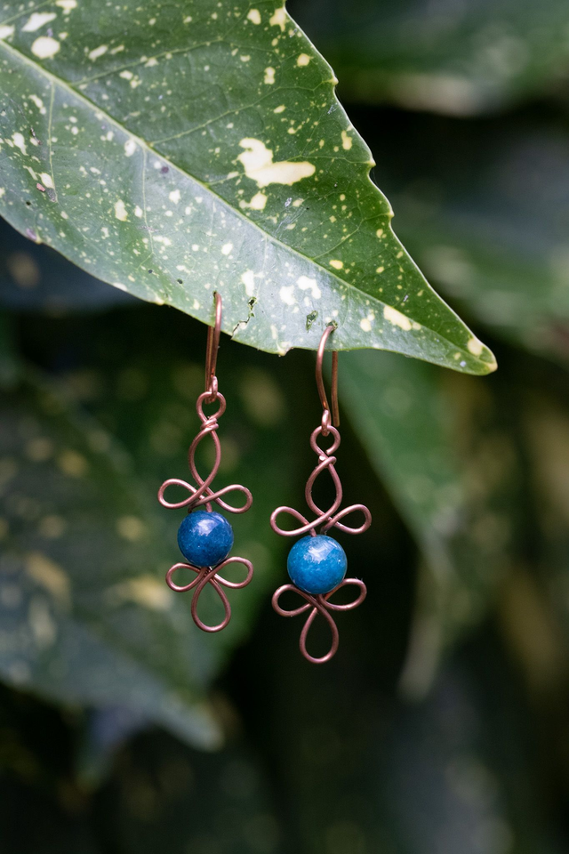 Boucles d'oreille en fils de cuivre et perle d'apatite