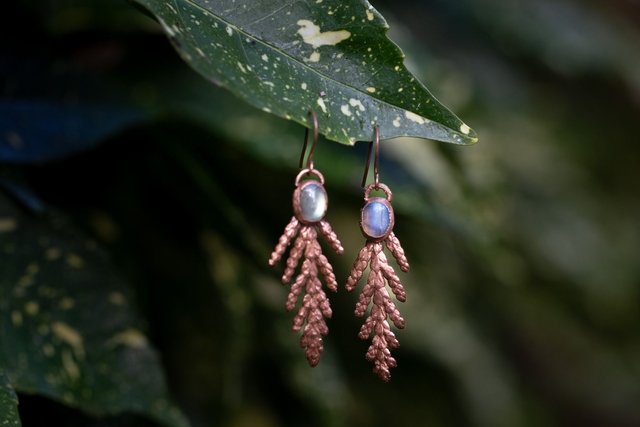 Véritables branches de Thuya associées à une labradorite, pour embellir vos oreilles